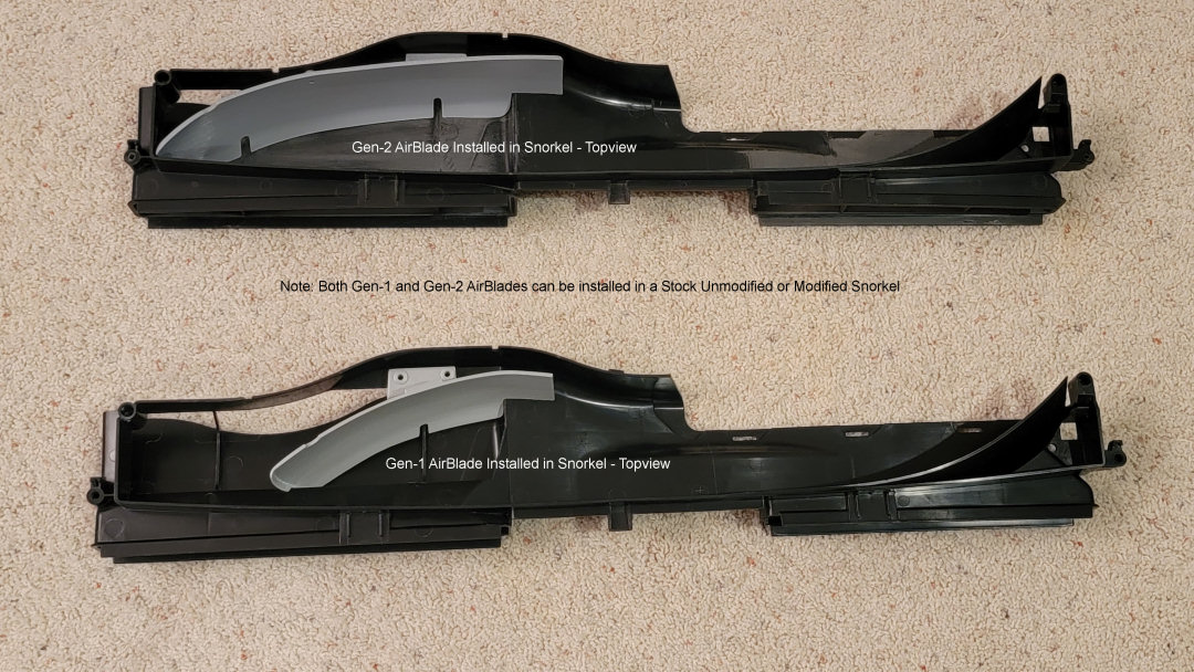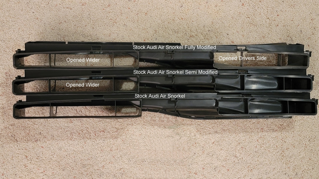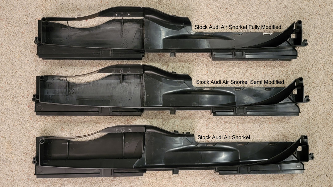 by Modifying the OEM Stock Cold Air Intake Duct with Drivers Side Intake Vents Opened and using our Air Blade Less than 1/10 the cost of comparable Cold Air Intake Ducts on the Market Various Snorkel Modifications Levels Complete Performance Air Intake System Using our Air-Blade